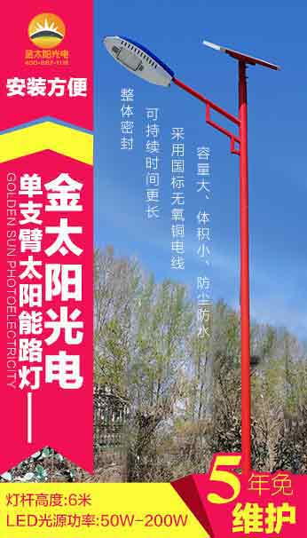 黑龍江金太陽光電自主研發(fā)設(shè)計的新款太陽能路燈上市,歡迎新老客戶前來淺談業(yè)務(wù)。
